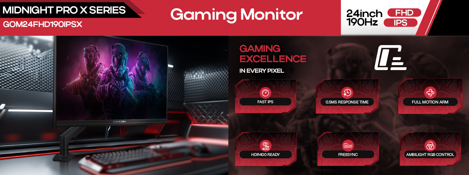 GAMEON 24FHD190IPSX Midnight Pro X Series 24" FHD, 190Hz Gaming Monitor Price in Dubai, UAE